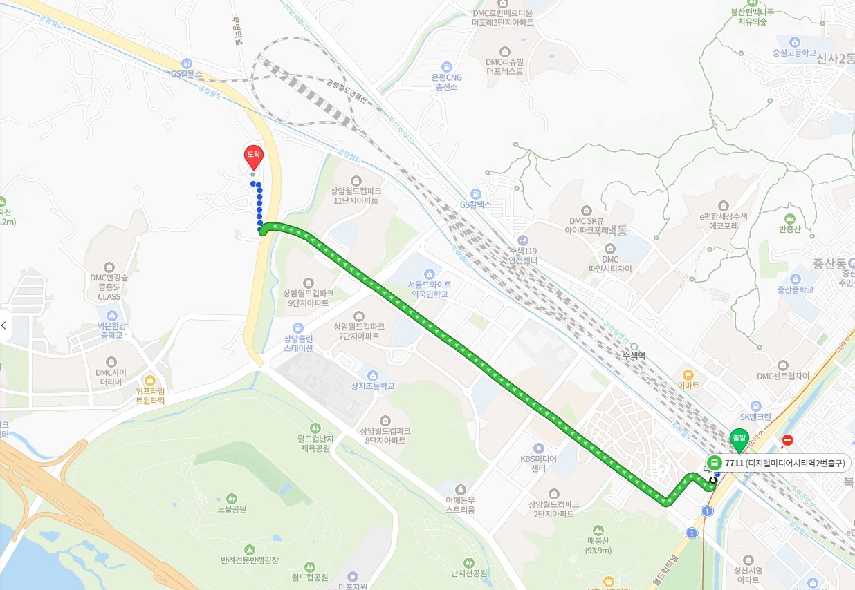 → 7711버스 환승 → 덕은동입구 하차 → 도보